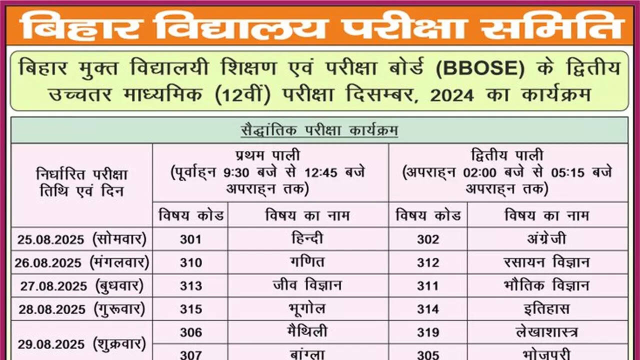 EducationBBOSE time table 2025: Bihar Board class 12 December exam dates announced, exams start on 25 August; check full datesheet via Latest Education news – Board Exam Results, Admit Cards, Exam Paper Analysis and Question Papers | Times of India https://ift.tt/iBUW10L Author jobnagar100 View all posts