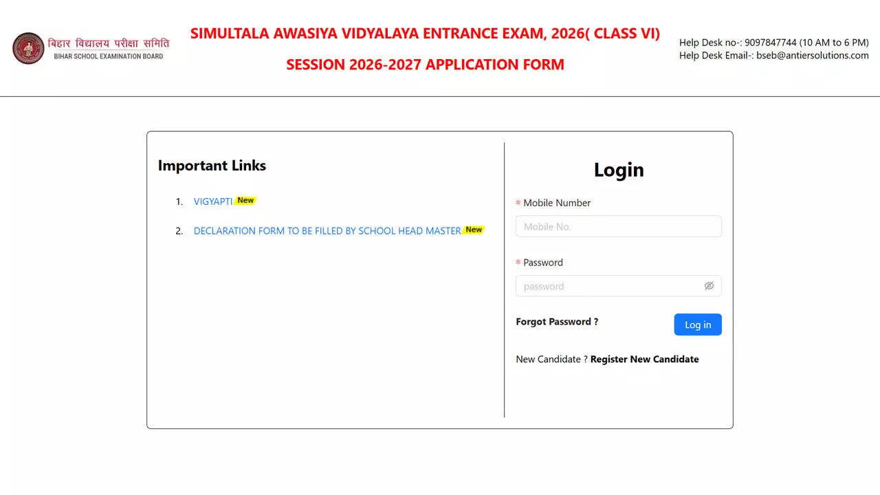EducationBSEB SAV admission 2026–27: Apply for Class 6 at biharsimultala.com before 15 September via Latest Education news – Board Exam Results, Admit Cards, Exam Paper Analysis and Question Papers | Times of India https://ift.tt/aSk6BRg Author jobnagar100 View all posts Share this:FacebookX Related